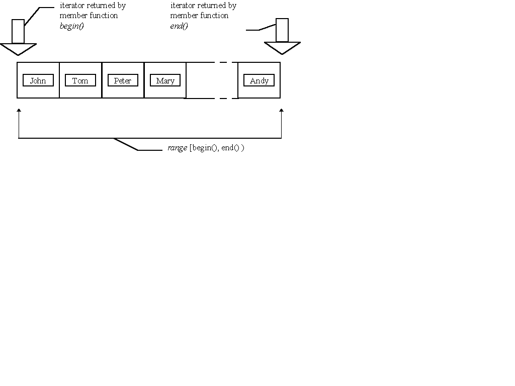 The term iterator needs some explanation. There are two member functions which return so-called iterators: begin() and end().